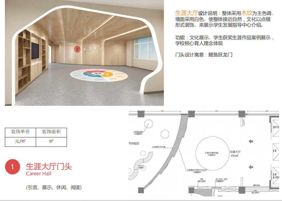 博高建材公司配套裝飾項目之交大附中生涯中心設計方案圓滿落地效果圖展示